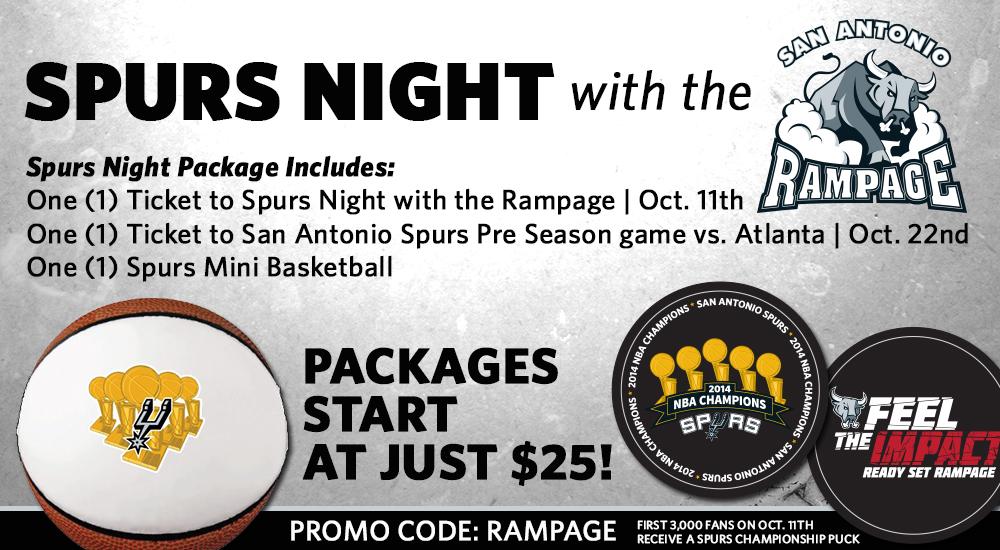 By selling various Rampage ticket packages, Jr. will receive 4 lower level Spurs tickets and parking pass, a foursome at TPC San Antonio, and an authentic Rampage signed jersey. San Antonio. Anybody with a valid game ticket can access the Blue Carpet Event prior to the game. ... Doc Viewer